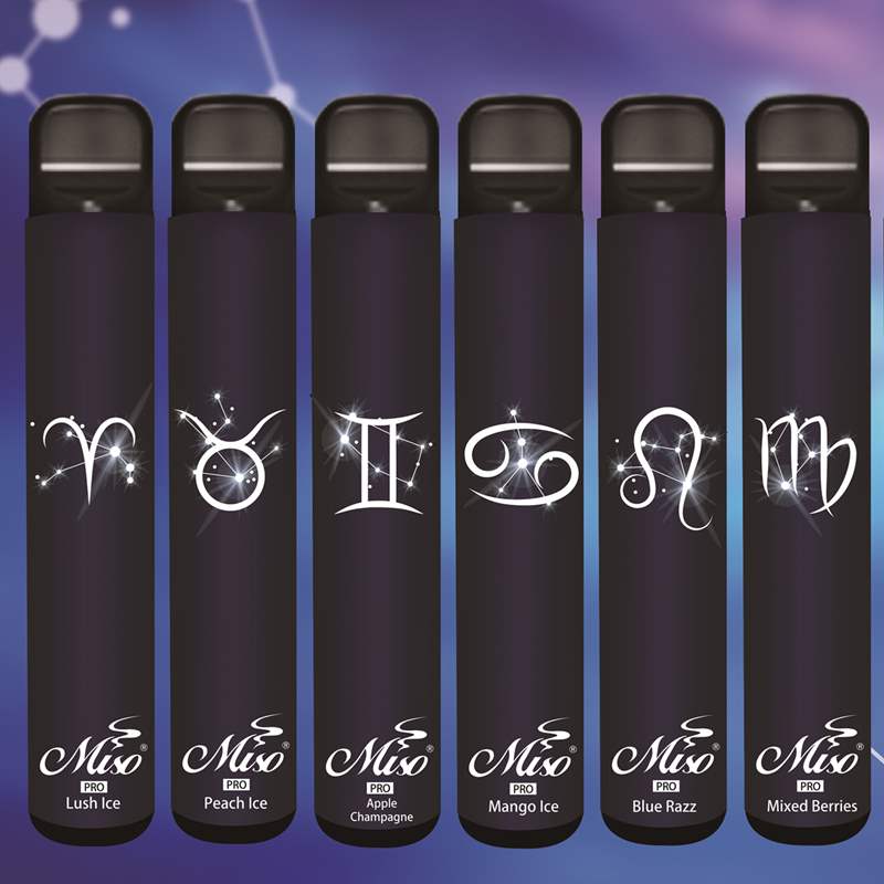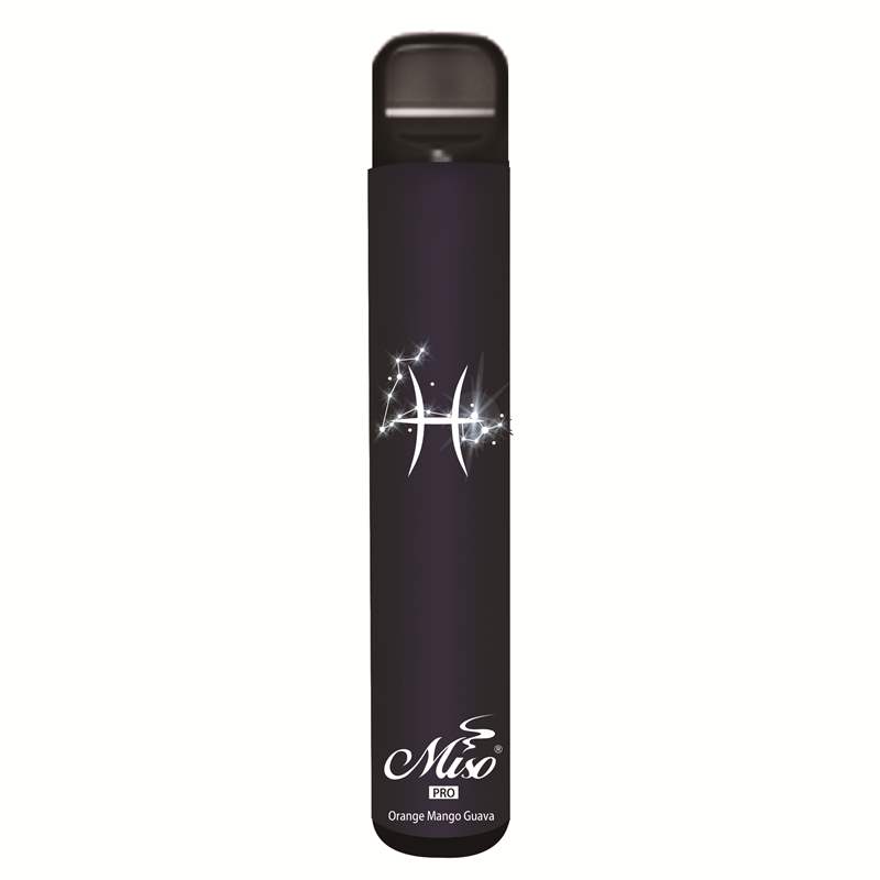 Product Name: MISO Pro Disposable Vape Weight: 60g Battery Capacity: 850mAh Pod Capacity: 4ml Puff Times: Around 1500 Puffs Nicotine Strength: 5% Flavors 1. Orange Mango Guava 2. Peach Ice 3. Mango Ice 4. Apple Champagne 5. Blue Razz 6. Juice Rum 7. Pineapple Lemonade 8. Lush Ice 9. Mixed Berries 10. Strawlychee 11. Banana Ice 12. Cool Mint Package: 10 pcs each Display Box