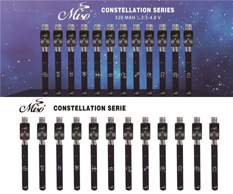 Product Name: Miso 510 Thread Battery Geometry Series Battery Capacity: 320mAh Voltage Range:3.3--4.8V Thread: 510 Thread Charger: USB Charger Colors:15 Different Colors